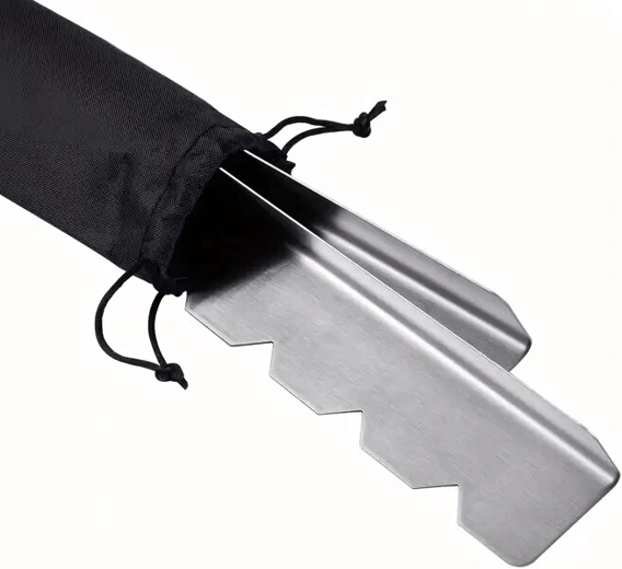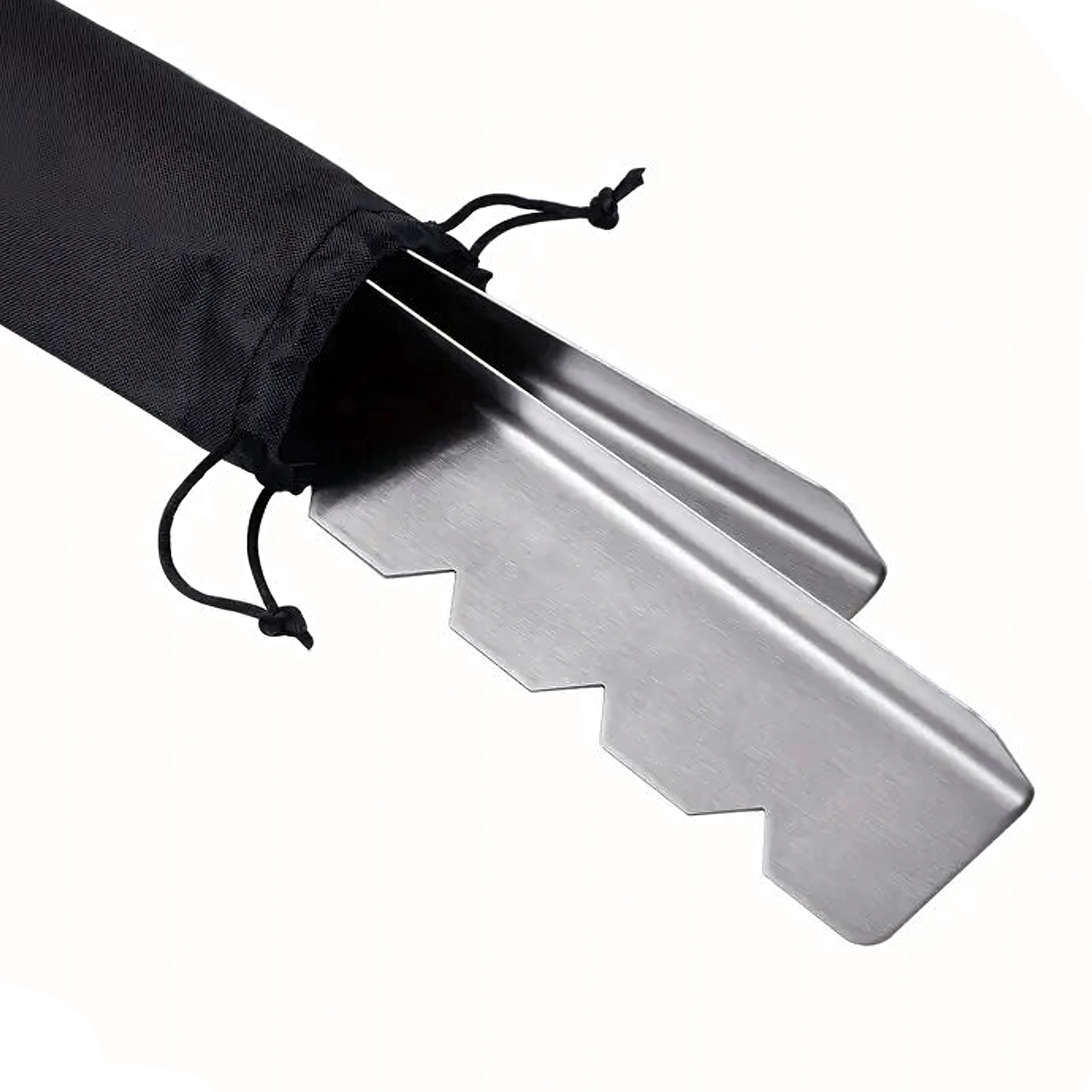 Praktyczne oczka na końcach ułatwiają manipulację i obracanie, a trwała stal nierdzewna gwarantuje długą żywotność i łatwe czyszczenie. Po grillowaniu cały zestaw schowasz do wytrzymałego tekstylnego etui, które mieści się w plecaku lub szufladzie.