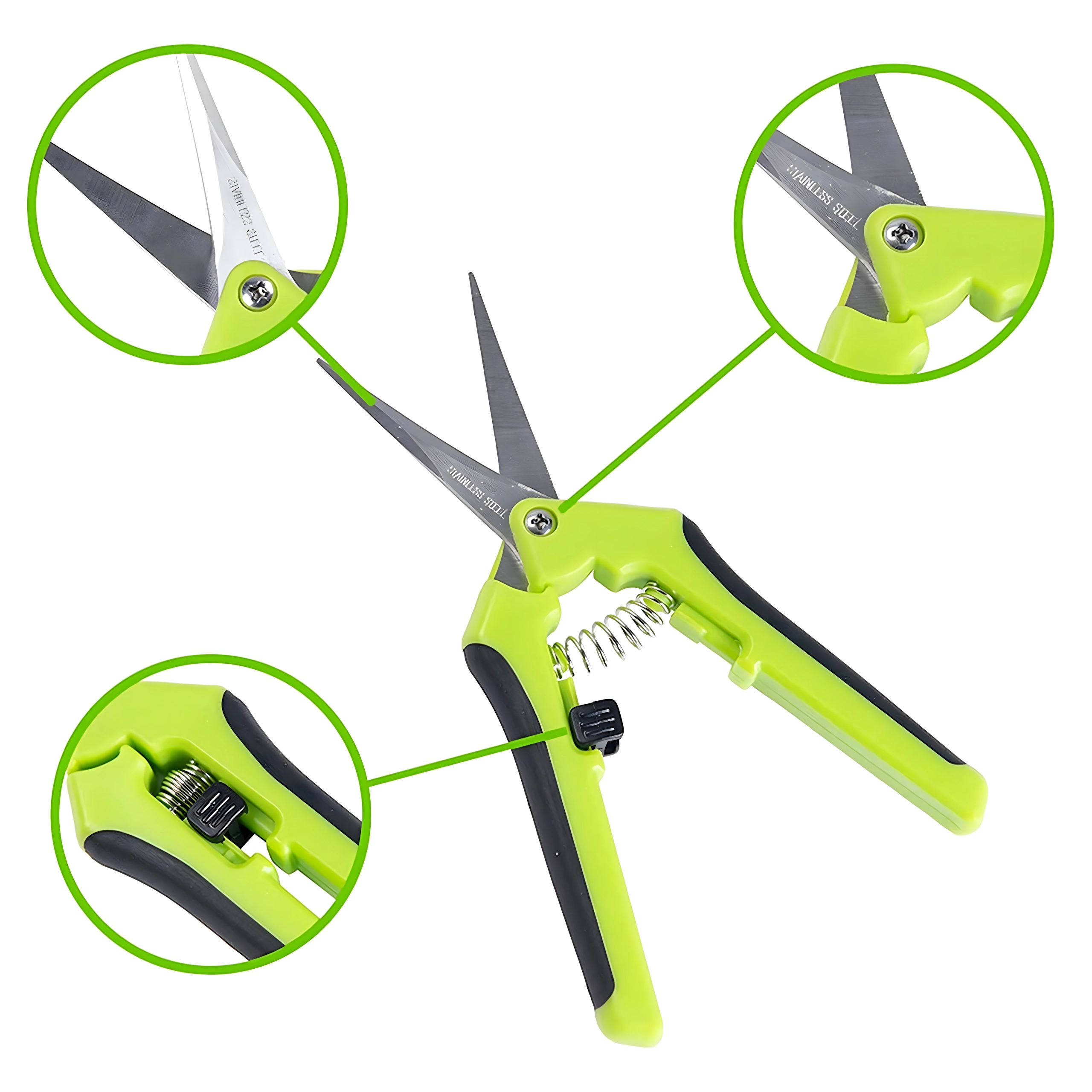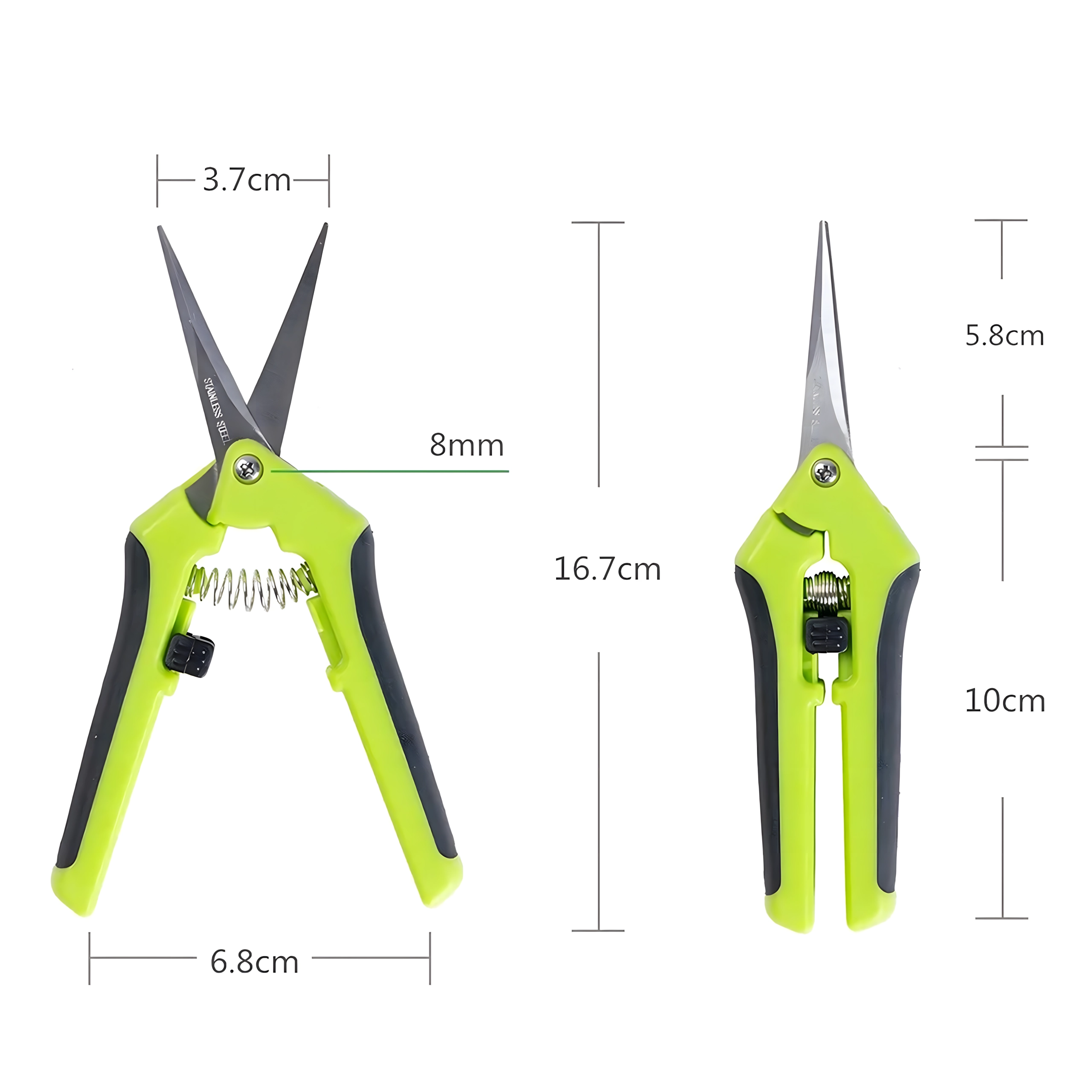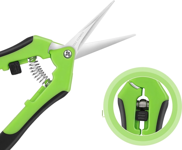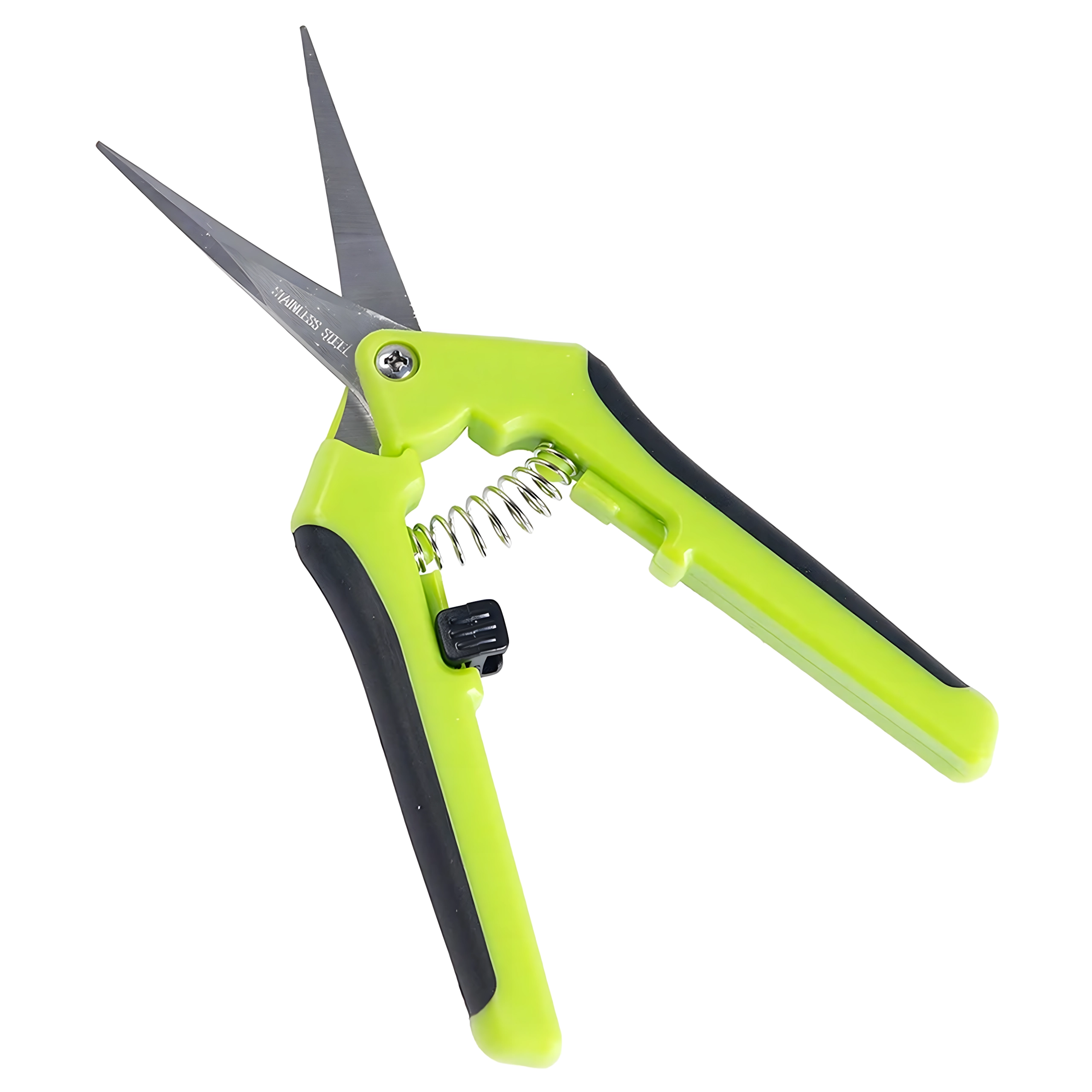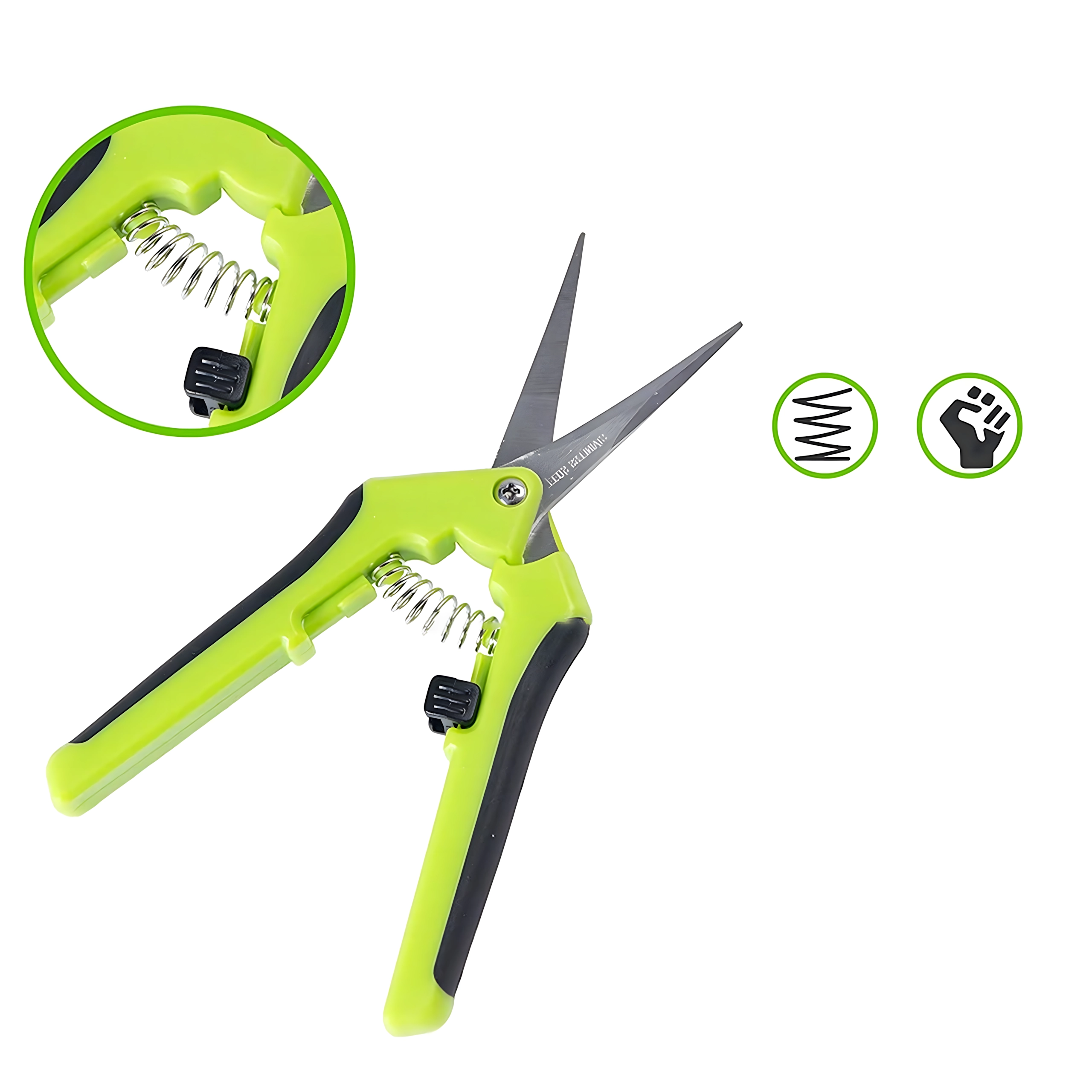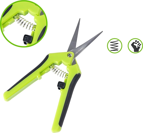 Te lekkie i precyzyjne nożyczki ogrodowe są idealne do delikatnego formowania roślin doniczkowych, ziół, kwiatów oraz młodych pędów w ogrodzie. Długie, spiczaste ostrza ze stali nierdzewnej zapewniają czyste cięcie bez strzępienia, a mechanizm sprężynowy odprowadza ostrza po każdym cięciu z powrotem – dla szybkiej, wygodnej pracy jedną ręką.