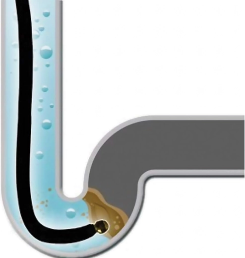Długi i giętki wąż niezawodnie przechodzi przez syfony i kolanka rur, docierając bezpośrednio do miejsca zatoru.