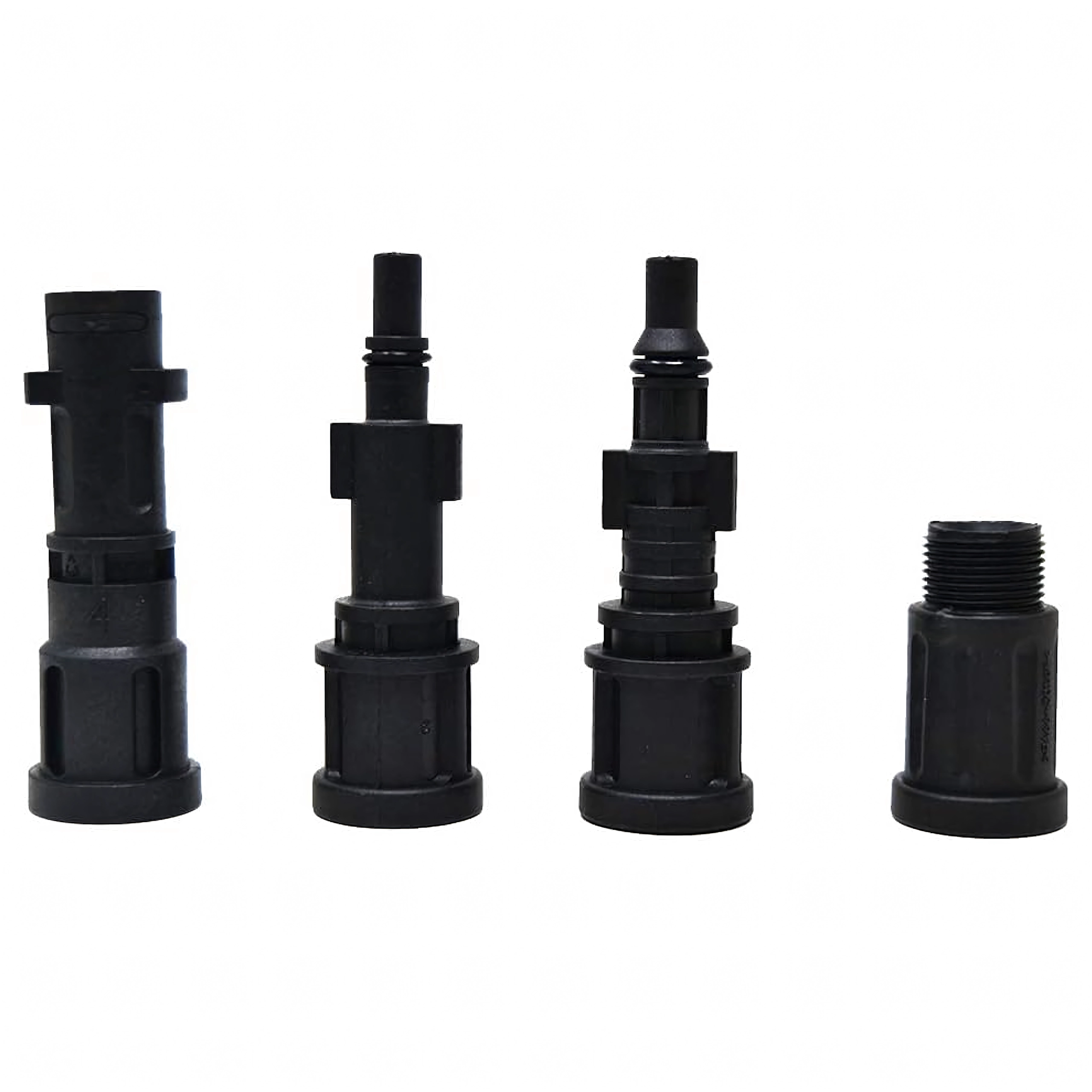Zestaw szybkozłączek i przejściówek zapewnia kompatybilność z szeroką gamą myjek ciśnieniowych i akcesoriów.