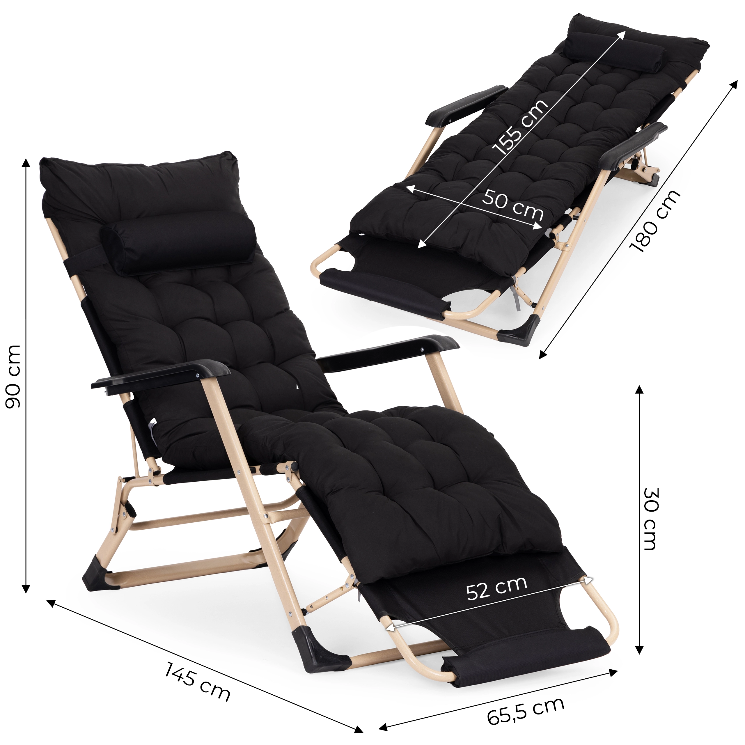 - 2 w 1 – fotel i leżak: uniwersalne zastosowanie do relaksu i opalania.