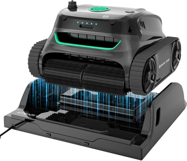 Wydajny bezszczotkowy silnik 90 W z przepływem 14 m³/h szybko wychwytuje zanieczyszczenia, a dwustopniowa filtracja (180 µm + 40 ppi) pozostawia wodę krystalicznie czystą. Robot radzi sobie z kompletnym czyszczeniem wszystkich stref – dna, ścian i tafli wody – a dzięki zaawansowanym czujnikom i żyroskopowi pewnie porusza się także po powierzchniach pionowych.