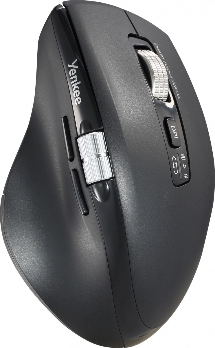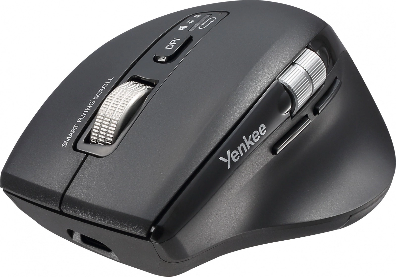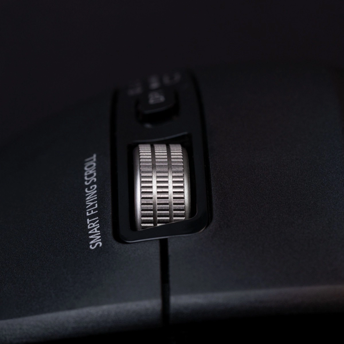 Ergonomiczna mysz SPIN o kształcie dla prawej dłoni odciąża nadgarstek i zwiększa produktywność w codziennej pracy. Metalowe kółko Smart Flying Scroll reagujące na prędkość obrotu umożliwia płynne oraz wyjątkowo szybkie przewijanie pionowe długich stron, a boczne kółko pod kciukiem zapewnia precyzyjne przewijanie poziome w arkuszach i aplikacjach graficznych.