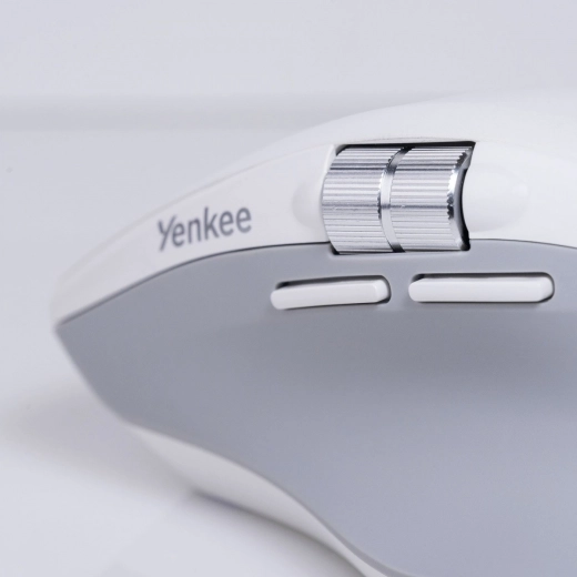 Pod kciukiem masz dodatkowo boczne metalowe kółko do przewijania poziomego – idealne do niekończących się arkuszy, osi czasu czy aplikacji graficznych. Łączność jest elastyczna: przełączaj się między dwoma urządzeniami przez Bluetooth lub użyj niezawodnego odbiornika USB 2,4 GHz. Zasilanie zapewnia akumulator Li‑Ion z czasem pracy do 125 godzin na jednym ładowaniu i ładowaniem przez USB‑C w około 3–4 godziny.