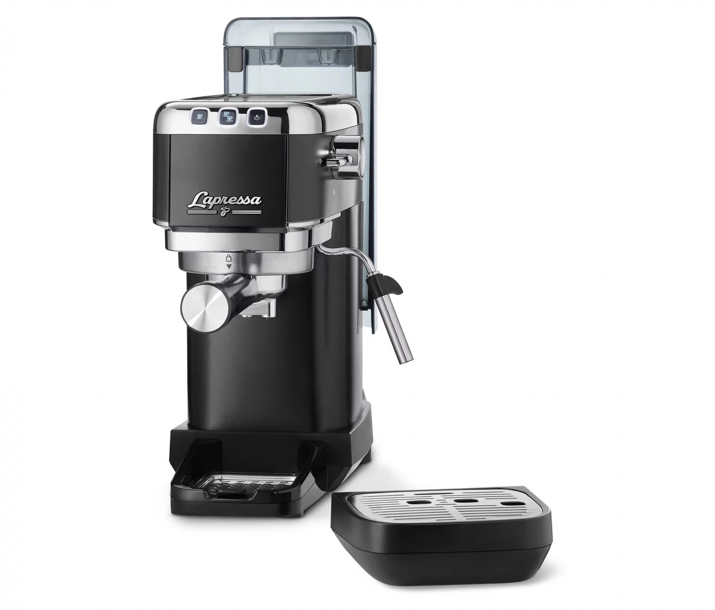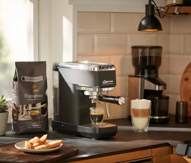 Kompaktowy kolbowy ekspres Lapressa został zaprojektowany dla miłośników espresso, którzy chcą topowego smaku i prostoty obsługi. Ciśnienie 15 barów i technologia preinfuzji podkreślają aromat i kremową piankę, a dysza parowa zapewnia aksamitną mikropianę do cappuccino lub latte.