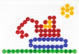 Kołeczki o średnicy 10 mm trenują chwyt, koordynację oko–ręka i wspierają fantazję przy tworzeniu własnych wzorów bez ograniczeń narzuconych szablonami.