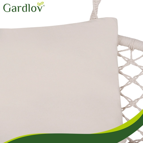Duże siedzisko uzupełnione dwiema miękkimi poduszkami zapewnia podparcie pleców i głowy, dzięki czemu odpoczynek w wiszącym fotelu będzie naprawdę pełny.