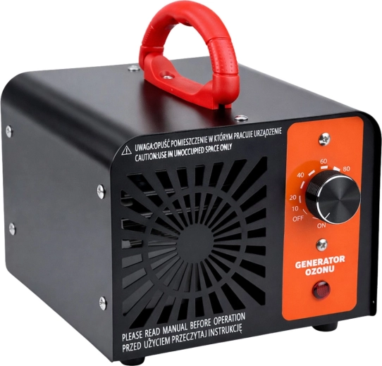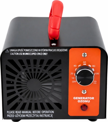 Intuicyjny manualny timer pozwala ustawić czas ozonowania od 1 do 120 minut w zależności od wielkości pomieszczenia i stopnia zanieczyszczenia. Wbudowany wentylator zapewnia równomierną dystrybucję ozonu, co zwiększa skuteczność procesu. Wytrzymała metalowa konstrukcja, stabilne cztery nóżki i praktyczny uchwyt ułatwiają codzienne użytkowanie i transport.