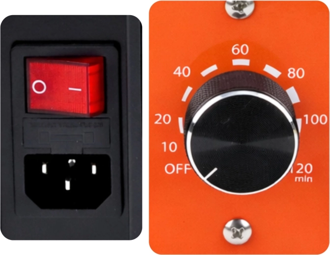 - Timer 1–120 min do precyzyjnego ustawienia cyklu