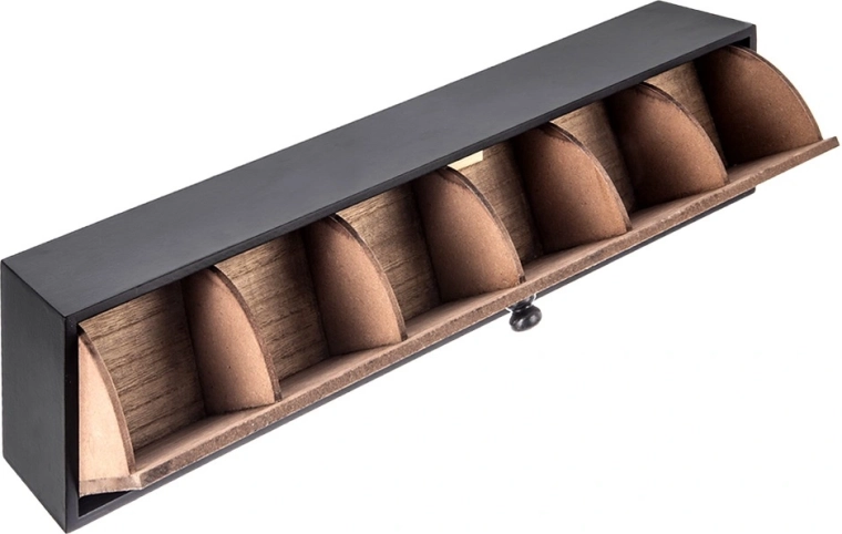 Sześć oddzielnych przegródek pozwala sortować smaki, utrzymać porządek i łatwo sięgać po właściwą torebkę.