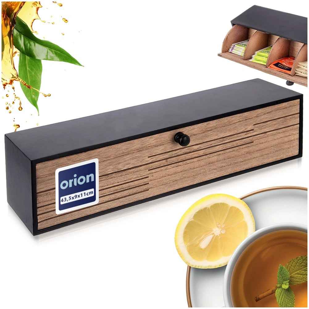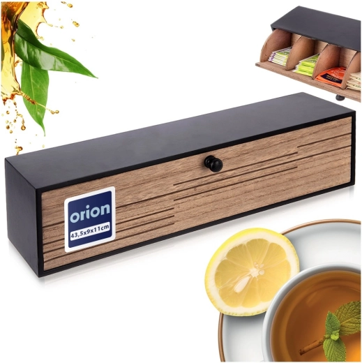 Utrzymaj porządek w ulubionych herbatach. Ten praktyczny box na torebki herbaty oferuje 6 wydzielonych sekcji na różne smaki, dzięki czemu każdy łatwo wybierze to, co lubi. Przednia ścianka uchyla się w dół, zapewniając natychmiastowy podgląd i dostęp, a wieko chroni zawartość przed kurzem i utratą aromatu.