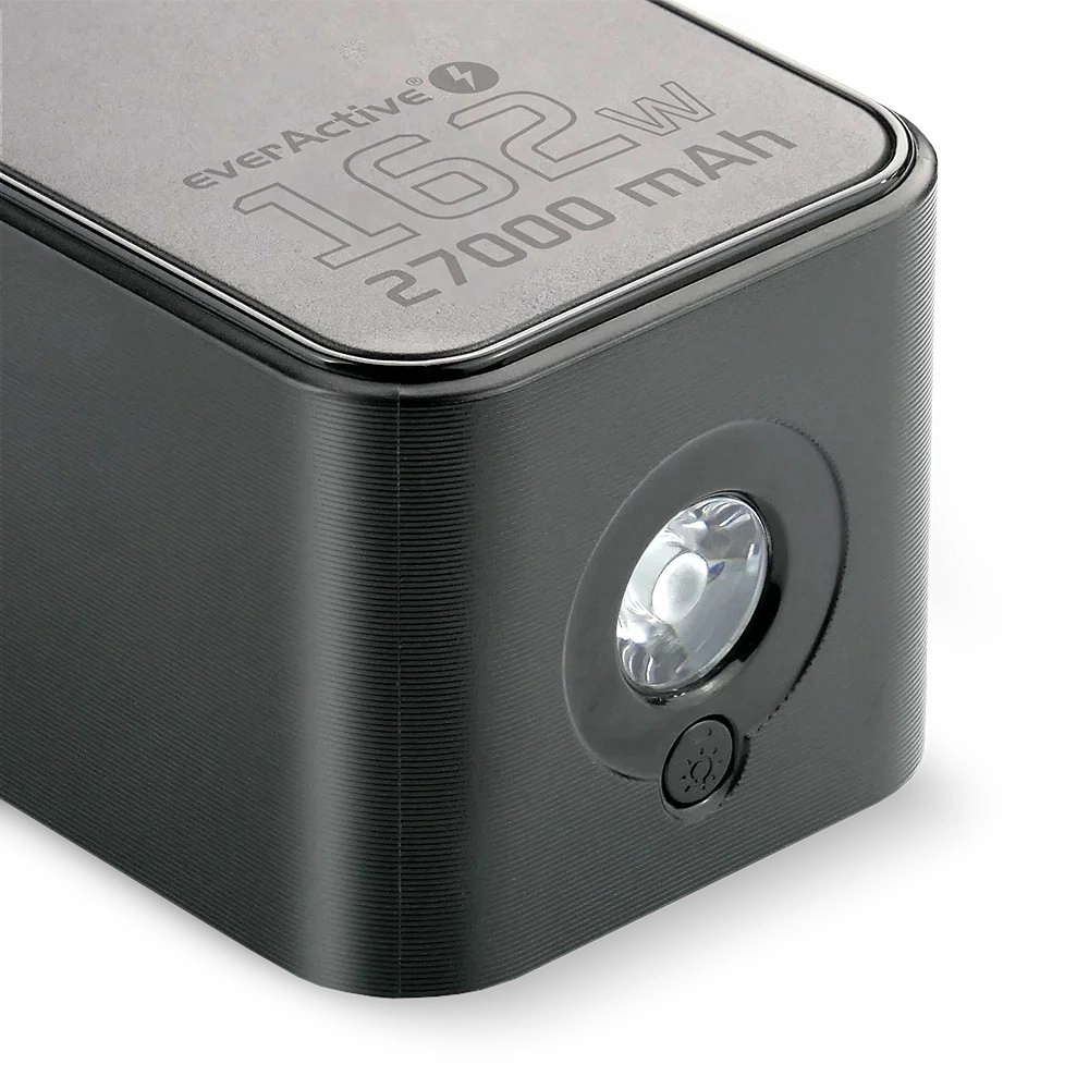 Wbudowana latarka LED z 4 trybami jest praktyczna w podróży, na kempingu i w sytuacjach awaryjnych. Wysokiej jakości ogniwa gwarantują stabilną pracę, wielokrotne doładowanie telefonu i niezawodne zasilanie dla laptopa, tabletu, konsoli czy aparatu. Nie zabrakło zaawansowanych zabezpieczeń przed przepięciem, przegrzaniem, zwarciem, przeciążeniem i głębokim rozładowaniem. W zestawie znajduje się przewód USB‑C e‑marker EPR 240 W gotowy na najwyższe moce.