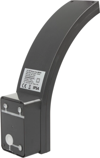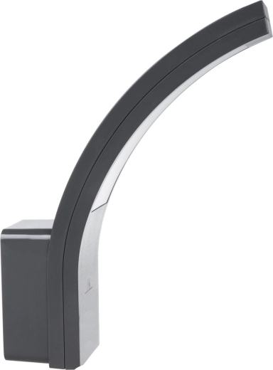 Nowoczesna ścienna oprawa LED z elegancko wygiętym korpusem i dużym dyfuzorem zapewnia przyjemne, nieoślepiające światło dla bezpiecznego poruszania się wokół domu. Świetnie sprawdza się na elewacjach, tarasach, pod zadaszeniami, przy wjazdach i w strefach wejściowych.