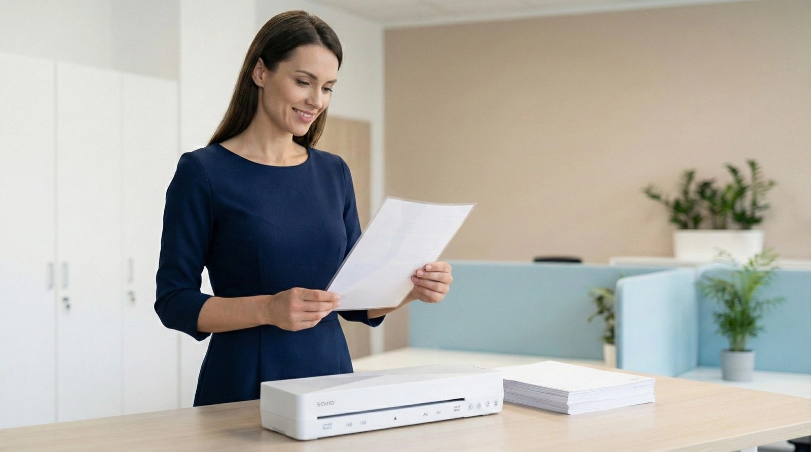 Laminowanie arkusza A4 trwa mniej niż minutę. Wlot o szerokości 230 mm obsługuje kilka formatów, idealne do biura i domu.