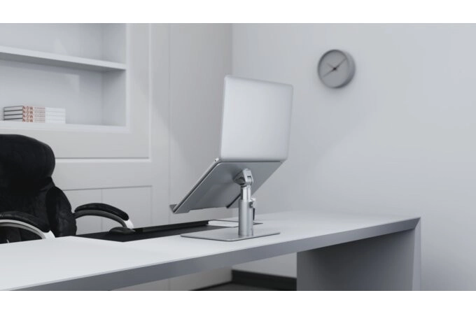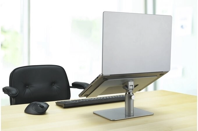 Uniwersalna podstawka pod laptopa pomaga unieść ekran do wysokości oczu i uzyskać naturalną pozycję ciała. Dzięki solidnemu połączeniu stali i aluminium jest wyjątkowo stabilna, a otwarta konstrukcja poprawia przepływ powietrza i wydajność urządzenia.