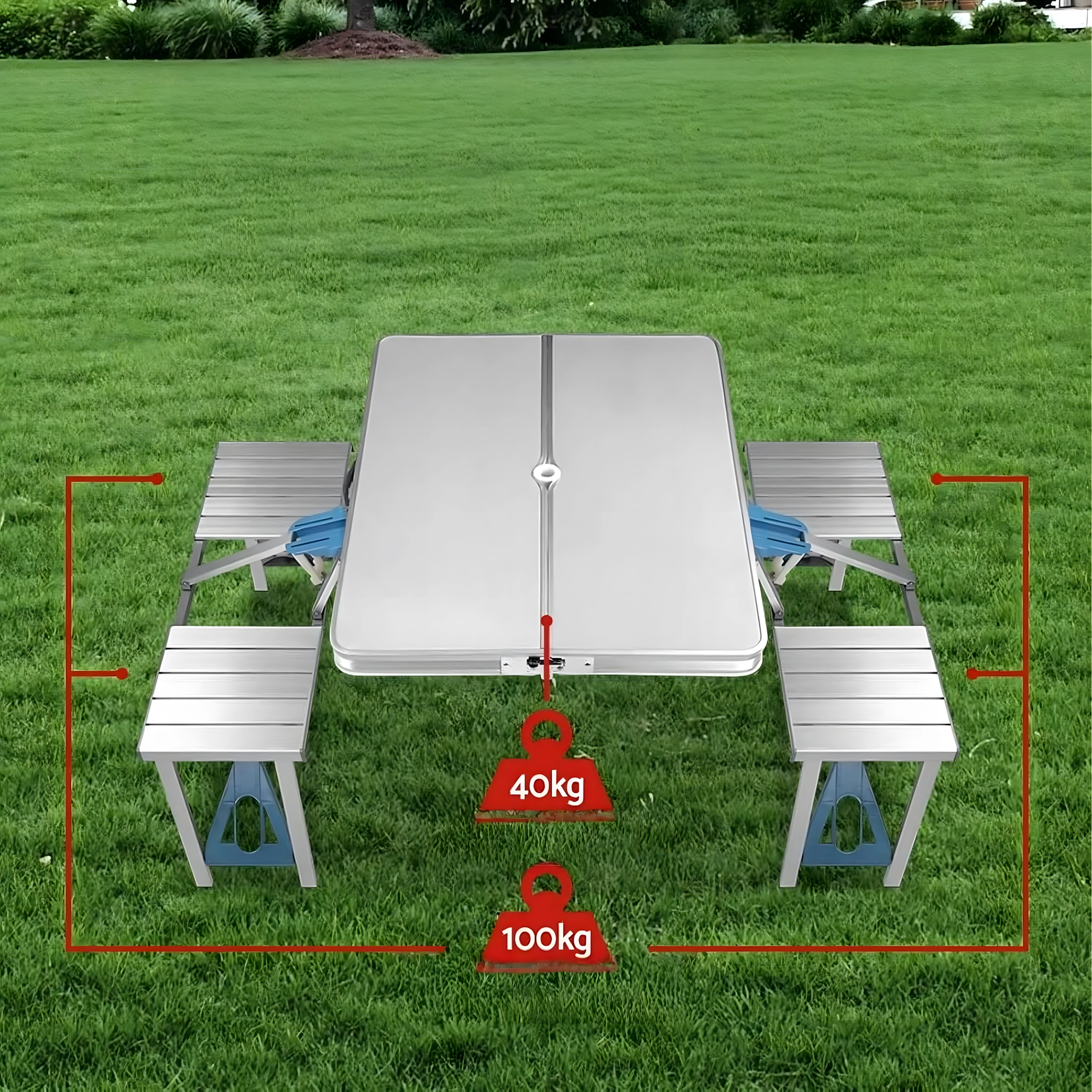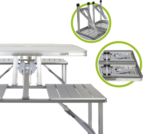 - Składany stół kempingowy/piknikowy z siedziskami