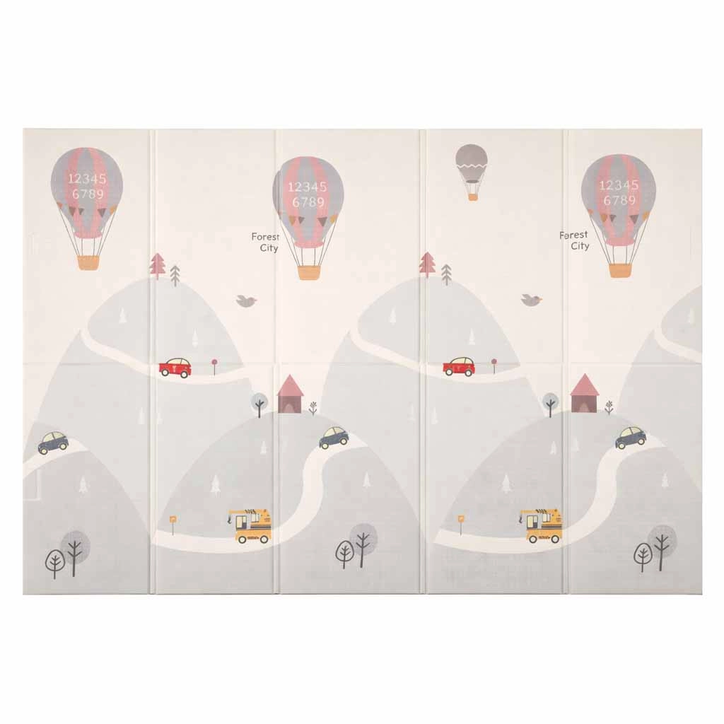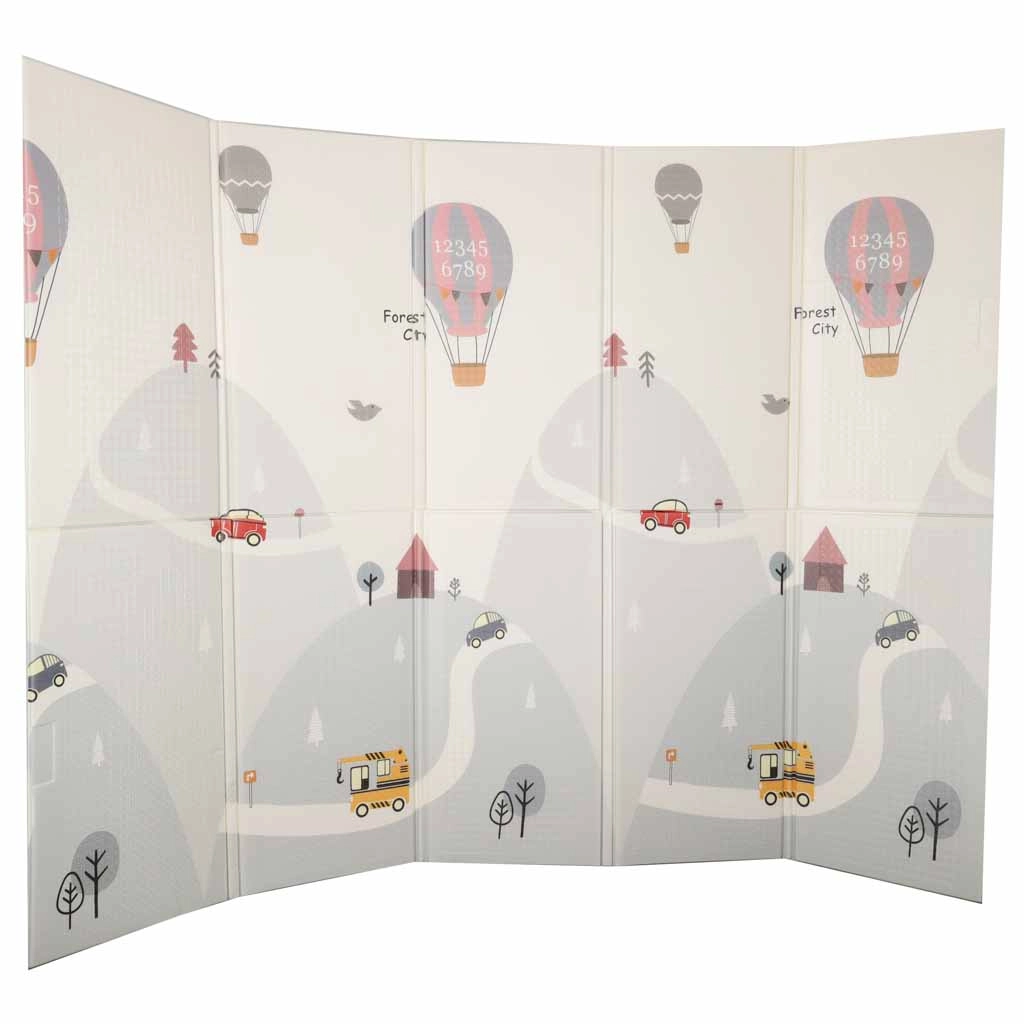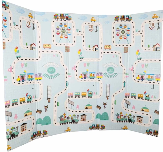 Dzięki materiałowi XPE mata jest trwała, higieniczna i łatwa w czyszczeniu. Lekka, składana forma umożliwia szybkie schowanie do dołączonej torby z uchwytami i wygodny transport. Odpowiednia do codziennego użytku w pokoju dziecięcym, salonie oraz w podróży.