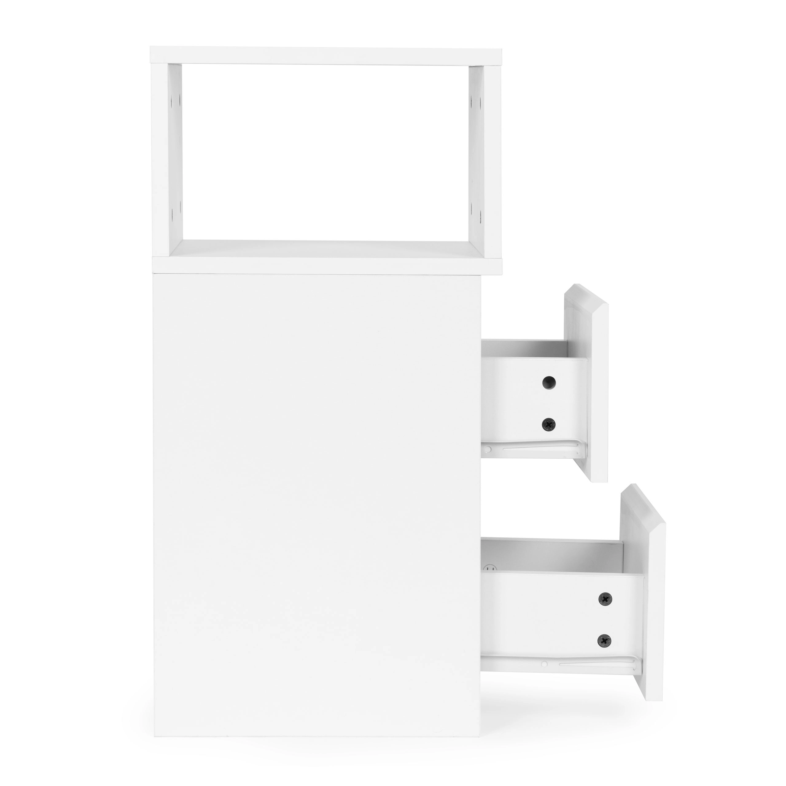 Przechowuj wszystko, co potrzebne: dwie pojemne szuflady dla porządku bez kompromisów oraz górna otwarta przegroda na książki, okulary czy telefon w zasięgu ręki.