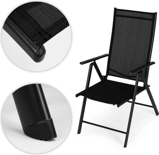 Dzięki składanej konstrukcji krzesło oszczędza miejsce i jest gotowe na kemping, piknik czy wyjazd. Ochronne stopki nóg minimalizują ryzyko zarysowania podłogi i tarasu. Nowoczesne, czarne wykończenie pasuje do większości zestawów ogrodowych i jest łatwe w utrzymaniu.