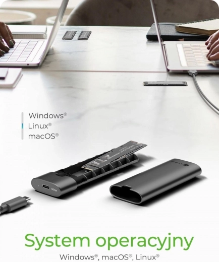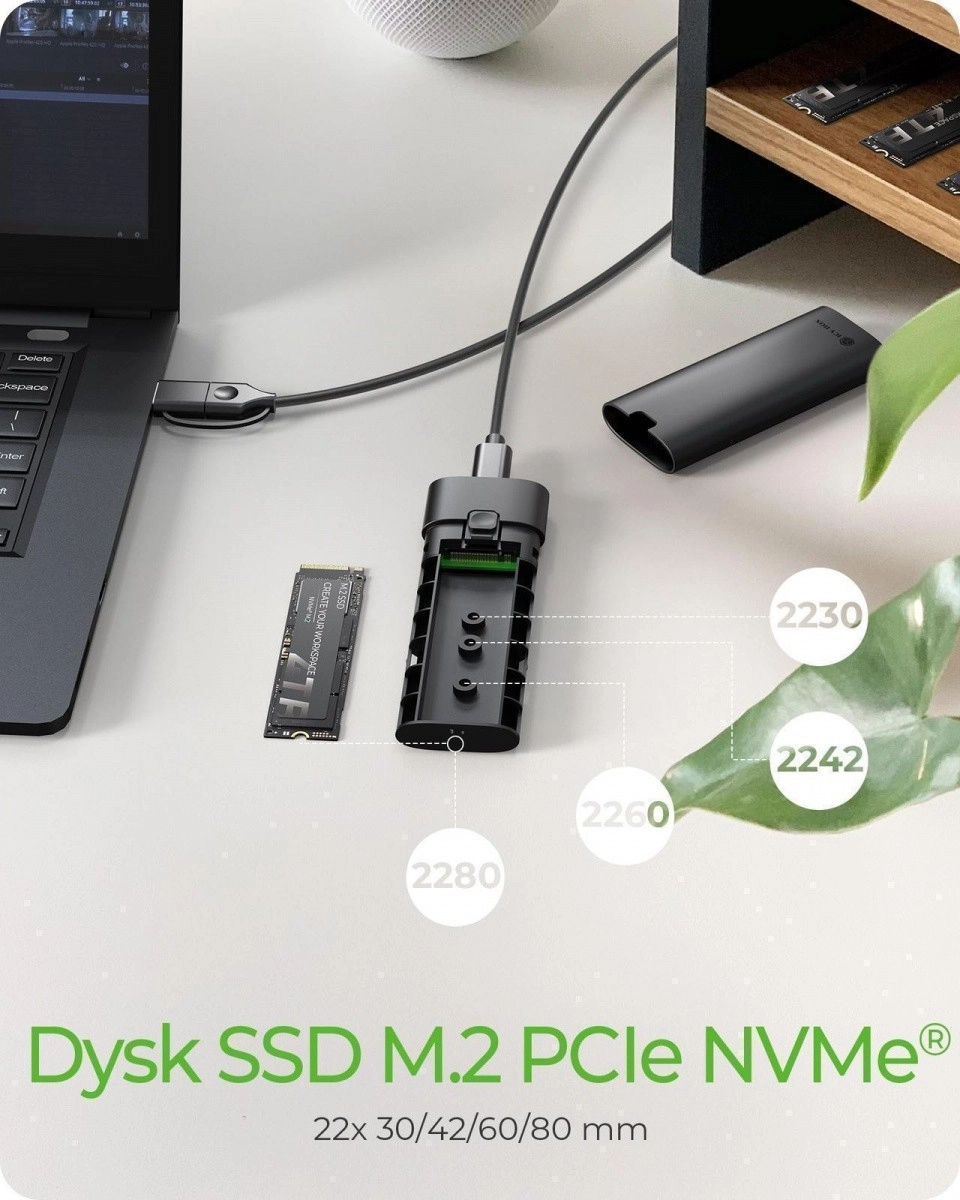 Kompaktowa aluminiowa obudowa dla SSD M.2 NVMe z interfejsem USB 3.2 Gen 2 Type‑C umożliwia szybki transfer danych do 10 Gb/s, montaż beznarzędziowy oraz szeroką kompatybilność z modułami 2230/2242/2260/2280. Wytrzymała konstrukcja z aluminium działa jako wydajny radiator i chroni dysk, a Plug & Play zapewnia natychmiastowe użycie w Windows, macOS i Linuxie.
