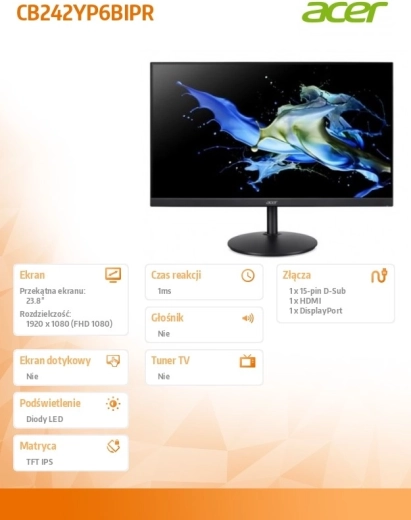 Dzięki złączom HDMI, DisplayPort i VGA łatwo podłączysz PC, laptop czy konsolę. Cienkie ramki oraz czysta, matowa czarna stylistyka oszczędzają miejsce na biurku i prezentują się elegancko w każdym miejscu pracy.