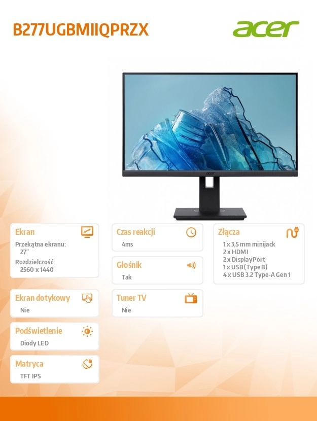 - Panel IPS z nasyconymi kolorami i szerokimi kątami.
