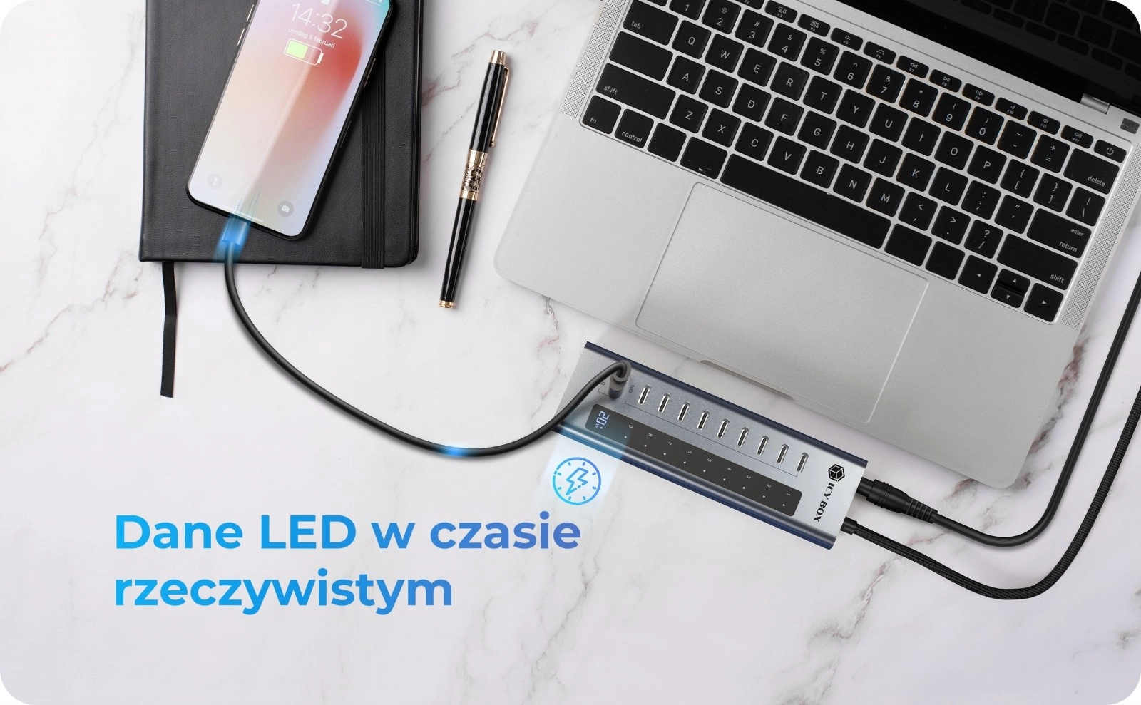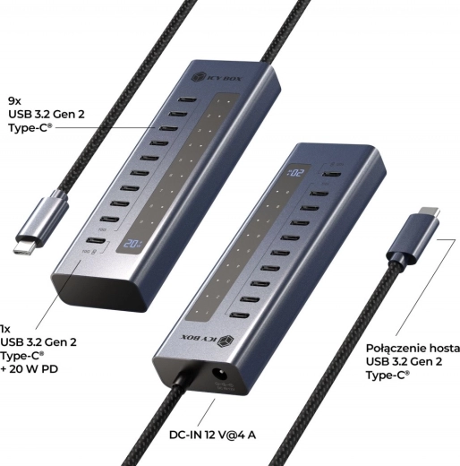 Hub USB-C IB-HUB1450-C31, 10× USB-C Gen 2 z zasilaczem