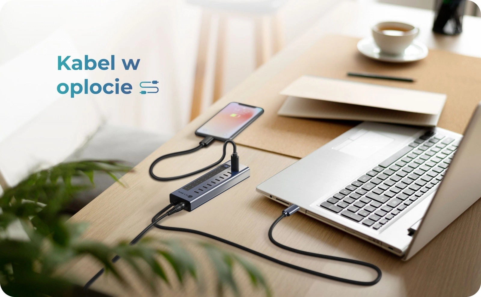 • Pleciony kabel USB-C odporny na plątanie, ścieranie i częste podłączanie.