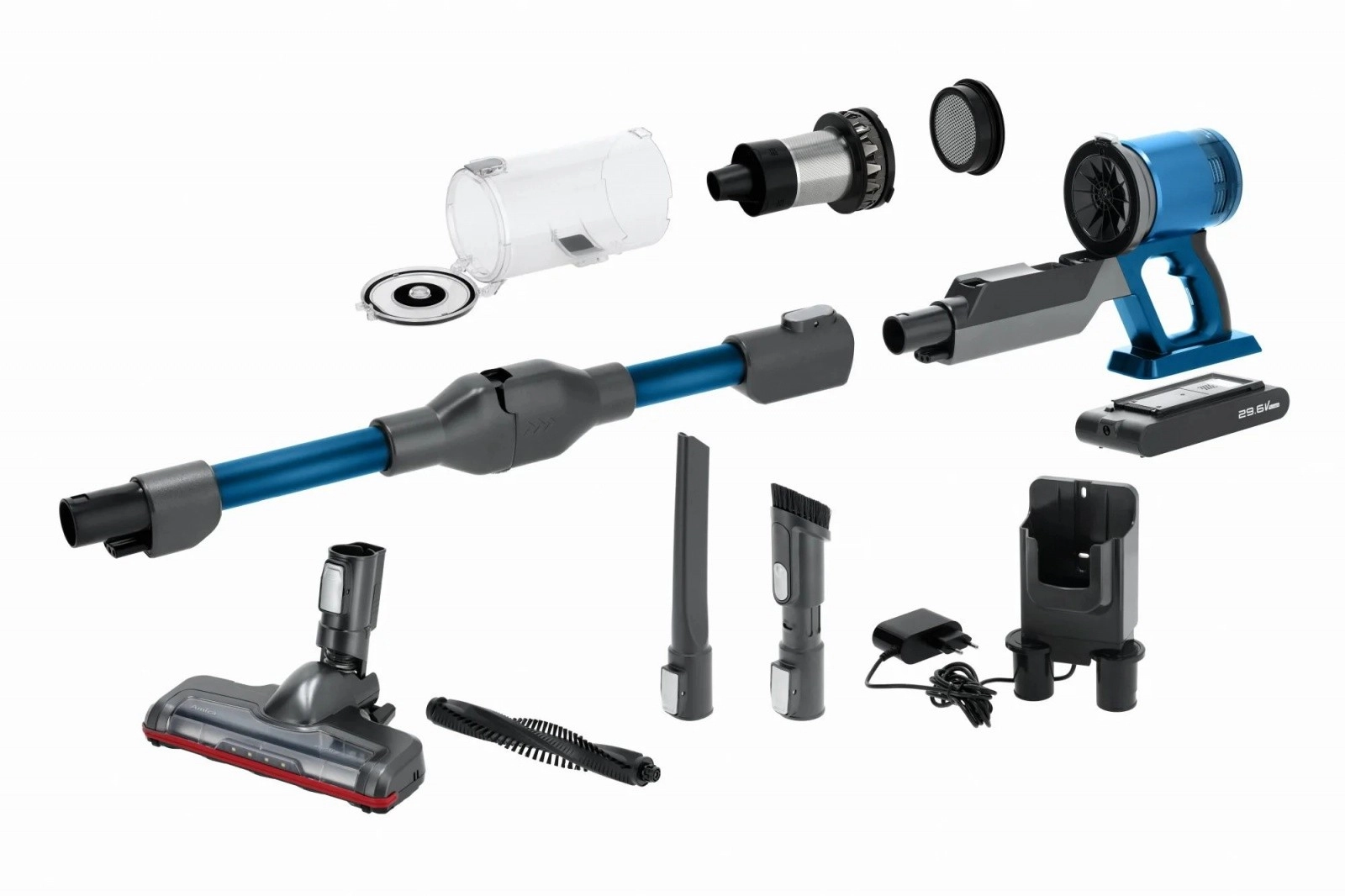 Amica Zonda PET łączy lekką konstrukcję, praktyczne wykonanie 2 w 1 (odkurzacz ręczny i pionowy) oraz inteligentne funkcje do codziennego sprzątania. Tryb Auto automatycznie dostosowuje moc ssania do poziomu zabrudzeń, a DustSensor niezawodnie rozpoznaje zmianę powierzchni i wyższe zanieczyszczenie. Dzięki elastycznej rurze EasyReach wygodnie odkurzysz pod kanapą czy łóżkiem bez schylania pleców.