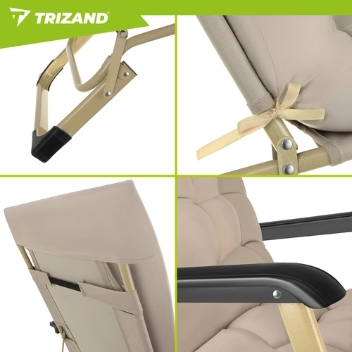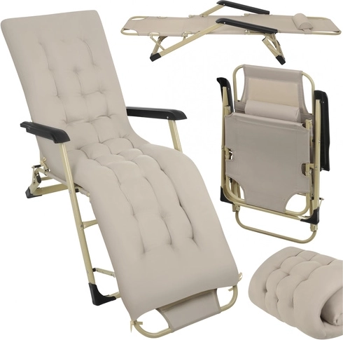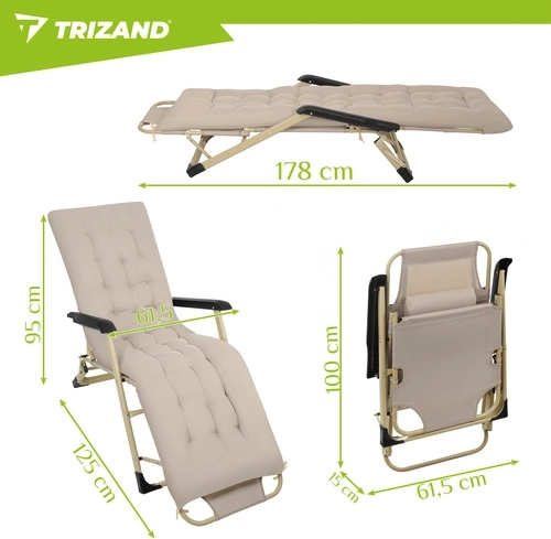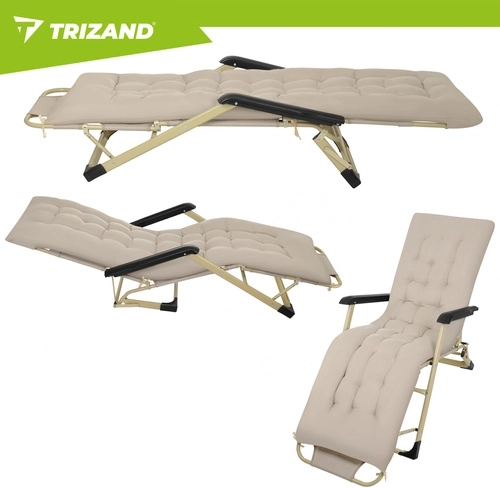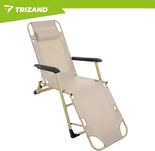 Ciesz się wygodą w ogrodzie, na tarasie i na plaży ze składanym leżakiem TRIZAND 3w1. Oferuje 3 pozycje (siedząca, półleżąca, leżąca), grubą poduszkę na całej długości oraz odpinany zagłówek. Wytrzymała tkanina Oxford 600D jest łatwa w czyszczeniu, antypoślizgowe stopki zapewniają stabilność, a składana konstrukcja ułatwia transport i przechowywanie.