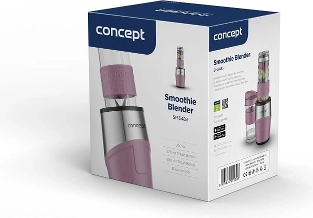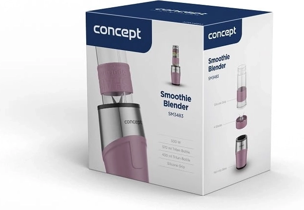 Kompaktowy blender do smoothie o mocy 500 W do szybkiego przygotowywania napojów bezpośrednio do przenośnych butelek. Dwie wytrzymałe butelki z Tritanu z wieczkiem i uchwytem, blokada bezpieczeństwa, antypoślizgowa podstawa oraz prędkość do 23 000 obr./min zapewniają łatwe, czyste i niezawodne miksowanie smoothie, koktajli i mrożonej kawy.