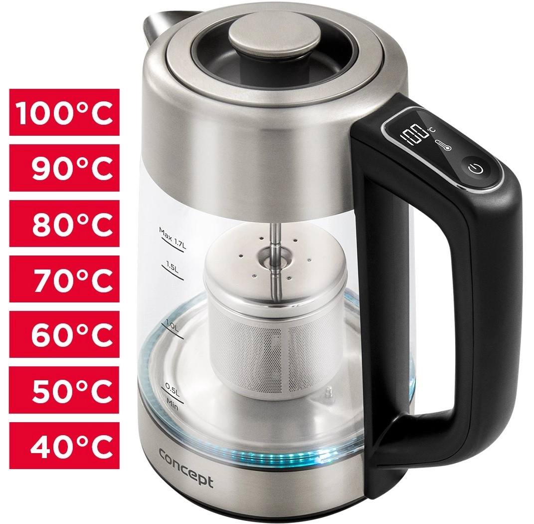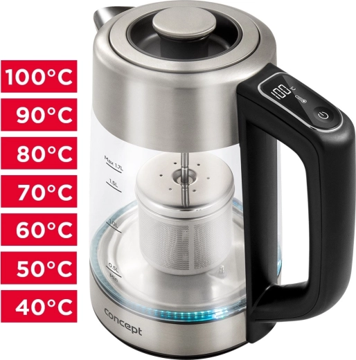 Sterowanie cyfrowe oferuje precyzyjne ustawienie temperatury w zakresie 40–100 °C (aż do wrzenia). Kolorowe podświetlenie LED informuje o aktualnej temperaturze wody na pierwszy rzut oka. Funkcja Keep Warm utrzymuje wodę w wybranej temperaturze – idealnie do wielokrotnego zalewania herbaty, kawy lub przygotowywania posiłków dla dzieci.