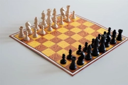 Lekka i poręczna szachownica o wymiarach 33 × 33 cm, łatwa w przenoszeniu, idealna w domu i w podróży.