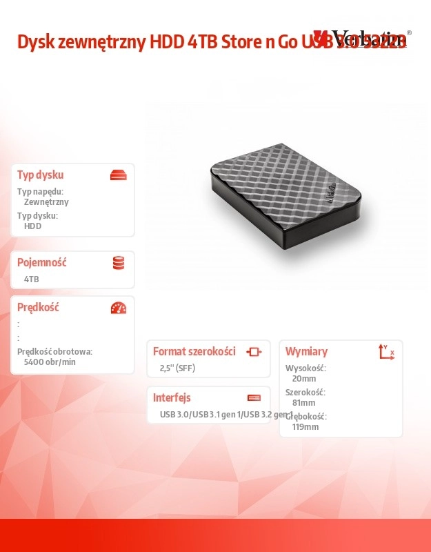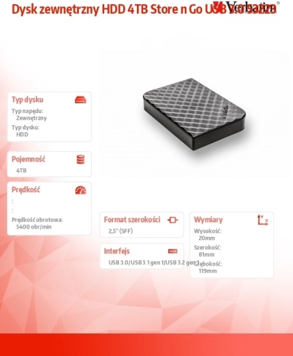 Zewnętrzny dysk twardy 4 TB USB 3.0 Store n Go