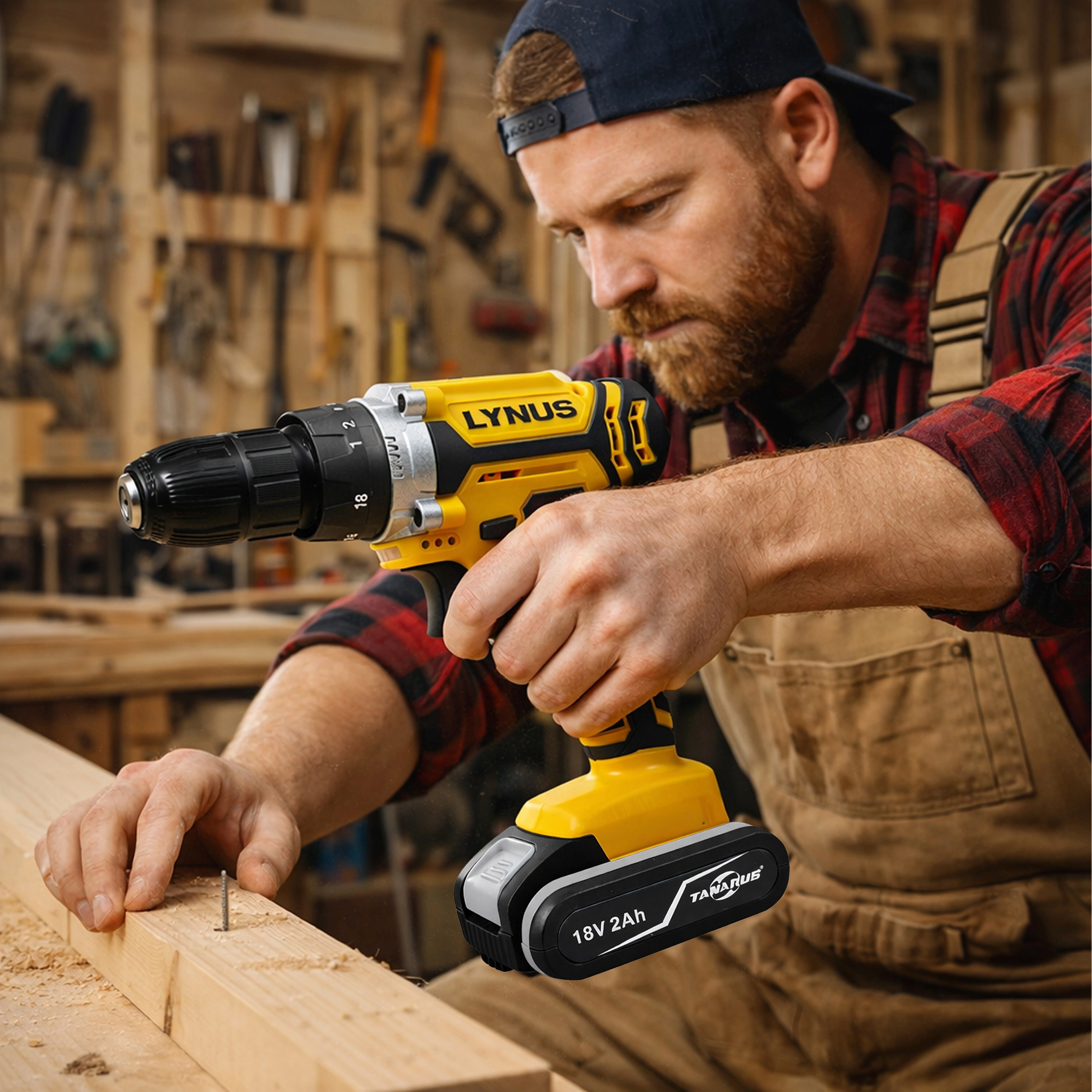 Ta wydajna wkrętarko-wiertarka akumulatorowa 18 V została zaprojektowana do szybkiego wiercenia i precyzyjnego wkręcania w drewnie, plastiku i metalu. Dwie baterie 2 Ah w zestawie wydłużają czas pracy – gdy z jednej korzystasz, drugą możesz ładować. Ergonomiczny uchwyt z gumowanym wykończeniem zapewnia pewny chwyt i wygodę nawet przy dłuższym użytkowaniu.