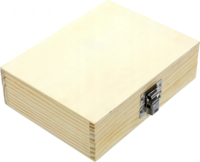Solidna drewniana walizka z piankową wkładką chroni narzędzia i utrzymuje je w porządku, ułatwiając transport i szybką orientację w zestawie.