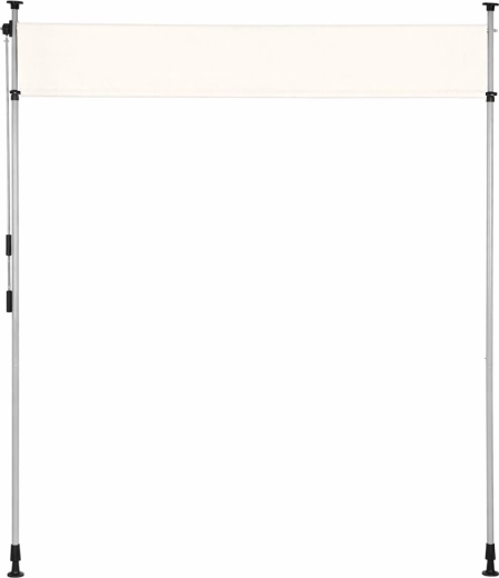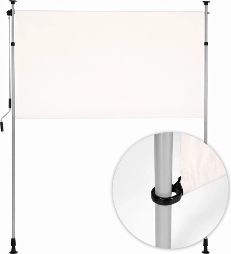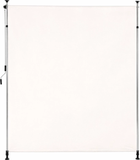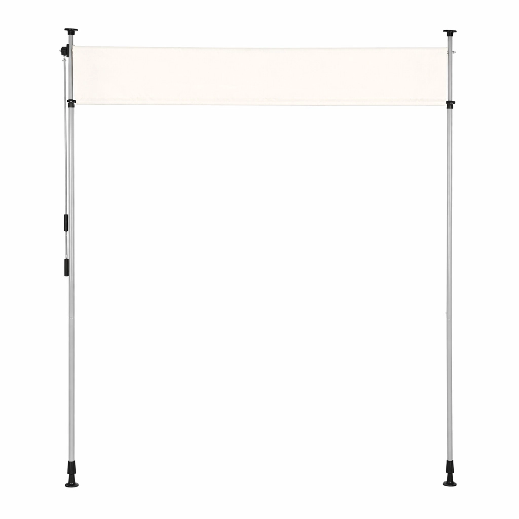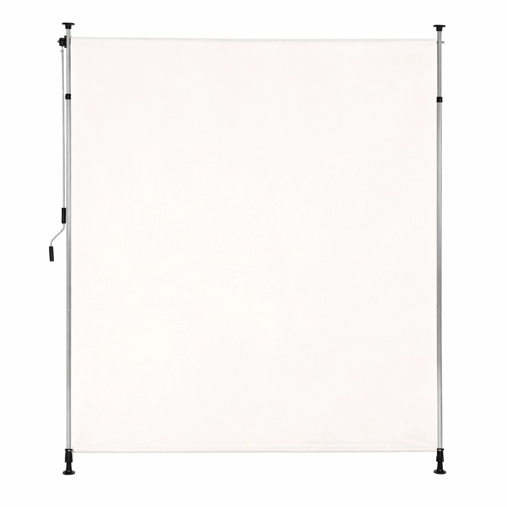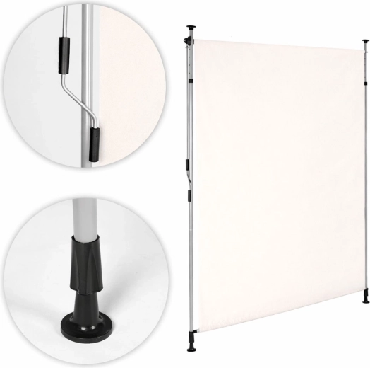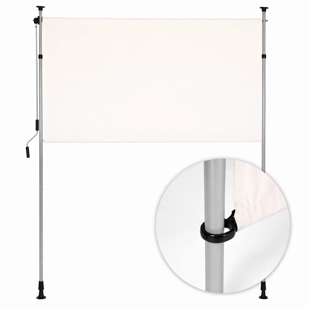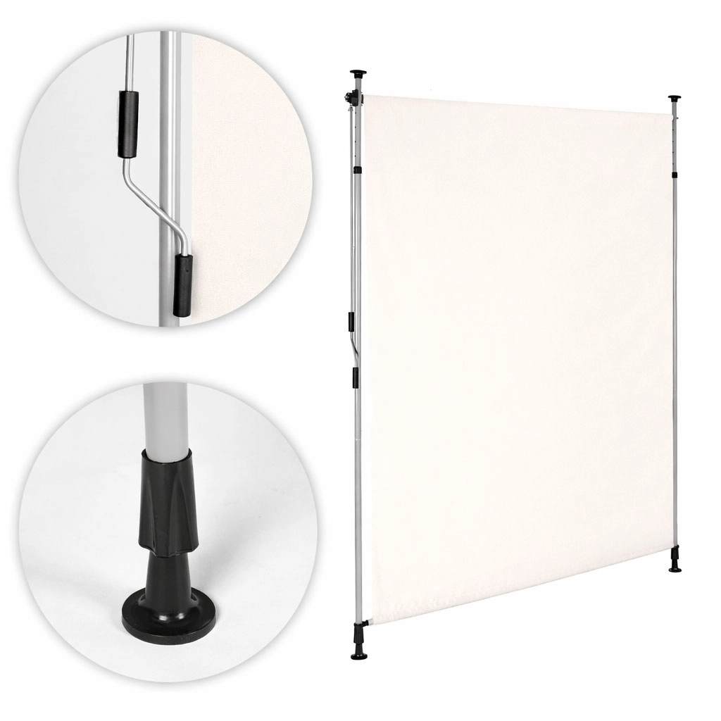 Solidna stalowa rama malowana proszkowo jest odporna na warunki atmosferyczne, a wysokiej jakości poliestrowa tkanina 180 g/m² z hydrofobową powłoką chroni przed słońcem i lekkim deszczem. Odporność na UV gwarantuje długą trwałość koloru i materiału, a antypoślizgowe końcówki pewnie utrzymują roletę między podłogą a sufitem.