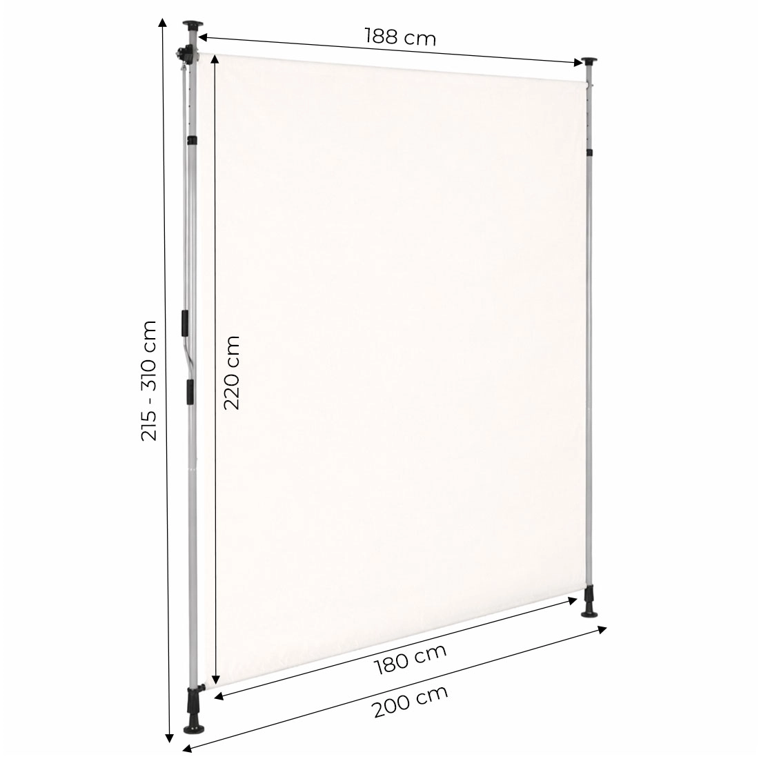 Stwórz przyjemny cień i prywatność na balkonie lub tarasie dzięki napinanej rolecie MultiGarden. Montaż bez wiercenia między podłogą a sufitem, płynna obsługa korbą oraz zakres wysokości 215–310 cm zapewniają idealne dopasowanie. Trwała stalowa konstrukcja malowana proszkowo, tkanina odporna na UV z hydrofobową powłoką 180 g/m² oraz antypoślizgowe końcówki gwarantują stabilność, wygodę i łatwą pielęgnację.