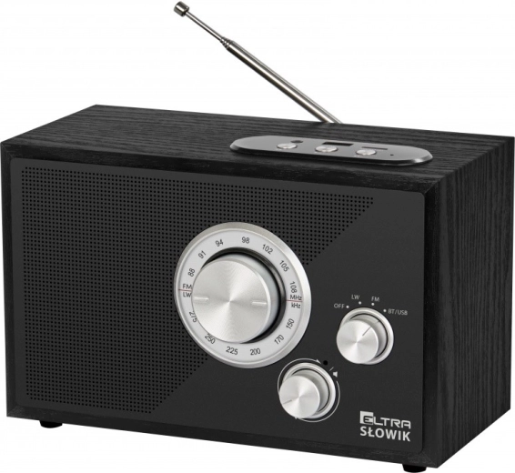 Popularne radio stołowe w eleganckiej czarnej drewnianej obudowie łączy klasyczny odbiór FM/LW z nowoczesnymi funkcjami. Oferuje streaming Bluetooth ze smartfona, odtwarzanie MP3 z USB i microSD, zasilanie sieciowe 230 V, moc 3 W dla dynamicznego dźwięku oraz antena teleskopowa dla lepszego odbioru. Idealne do kuchni, sypialni, gabinetu i warsztatu.
