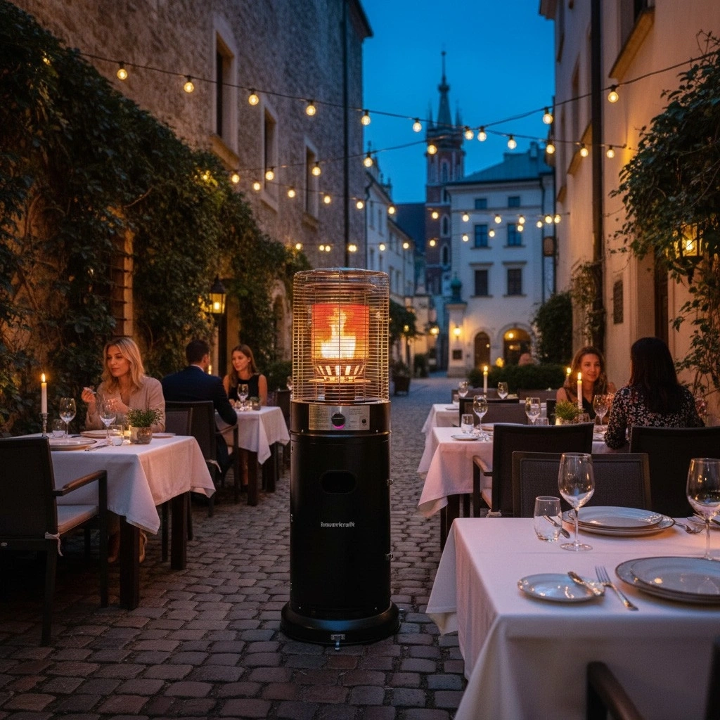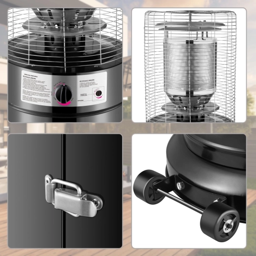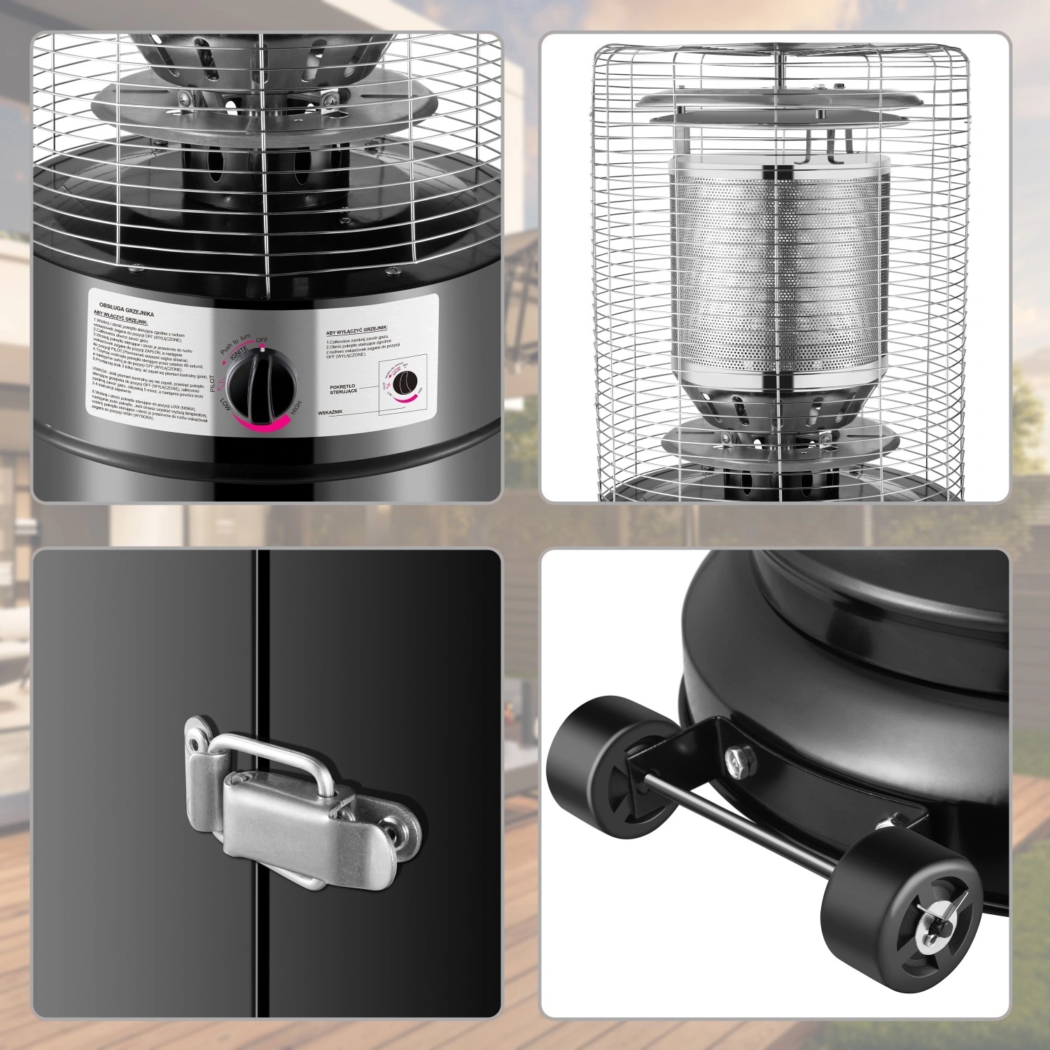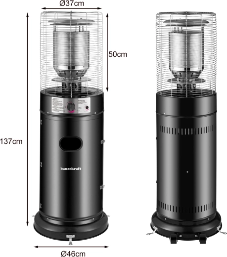 Ciesz się ciepłem na tarasie przez cały rok dzięki kompaktowemu gazowemu ogrzewaczowi o mocy 11 kW. Stabilna stalowa konstrukcja, płynna regulacja temperatury, zapalanie piezoelektryczne oraz kółka do łatwego przestawiania sprawiają, że to idealny wybór na tarasy, ogrody i patio restauracyjne. W zestawie znajduje się reduktor ciśnienia, wąż gazowy z opaskami oraz wodoodporny pokrowiec ochronny.