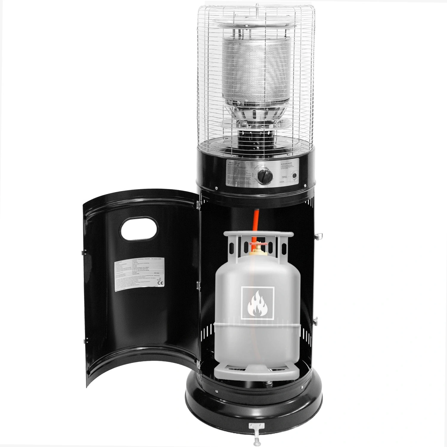 Zamykana przestrzeń na butlę gazową do 11 kg oraz zintegrowane kółka zapewniają wygodne przestawianie ogrzewacza w zależności od potrzeb.