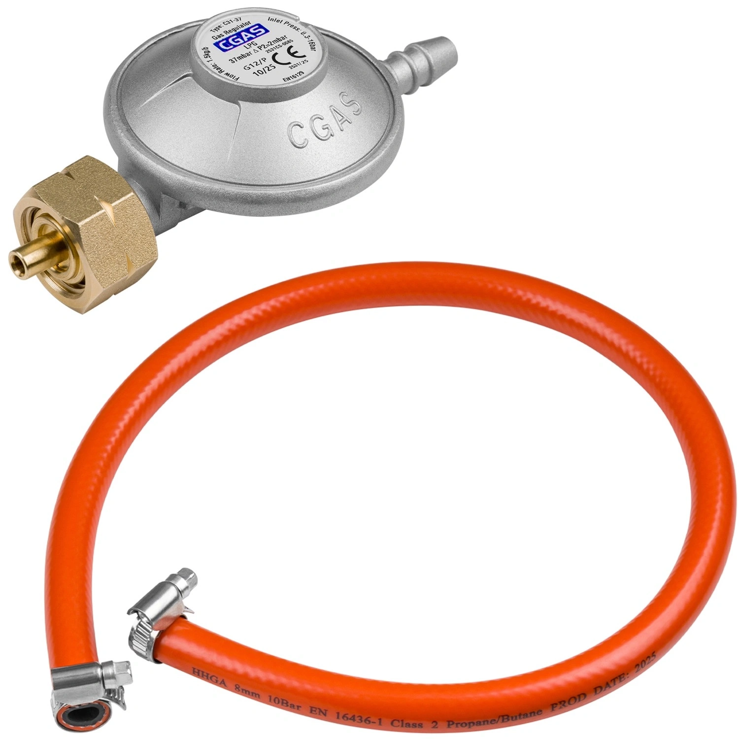 W zestawie znajduje się reduktor, wąż gazowy z opaskami oraz wytrzymały wodoodporny pokrowiec do ochrony podczas przechowywania.