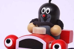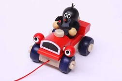 Drewniany samochód do montażu z motywem Krecika, który mruga podczas ruchu. Odpowiedni do zabawy i rozwoju umiejętności motorycznych dzieci.