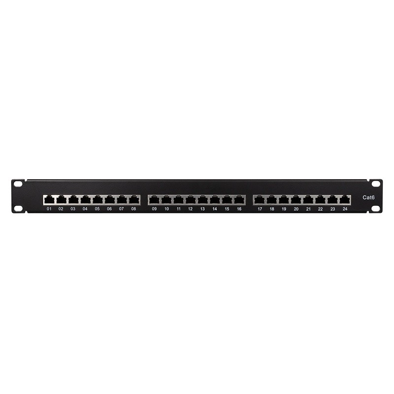 Ekranowany patchpanel Cat6 klasy E jest przeznaczony do szaf 19" i zapewnia 24 ponumerowane porty RJ45 dla szybkiej orientacji i bezbłędnego zarządzania przyłączami sieciowymi. Solidne metalowe chassis i wysokiej jakości ekranowanie gwarantują wysoką odporność, niższe zakłócenia oraz maksymalną stabilność transmisji w wymagających instalacjach.
