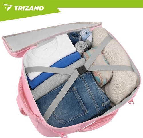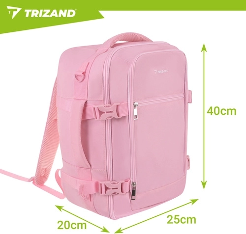 Szukasz podręcznego plecaka do samolotu, który przejdzie u większości linii i jednocześnie utrzyma porządek w rzeczach? Ten różowy plecak TRIZAND o pojemności 20 l został zaprojektowany do bezproblemowego podróżowania: wymiary 40 × 25 × 20 cm odpowiadają limitom małego bagażu podręcznego (np. Ryanair, Wizz Air, easyJet), otwiera się na płasko jak walizka, a wewnętrzne paski utrzymują odzież na miejscu.