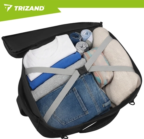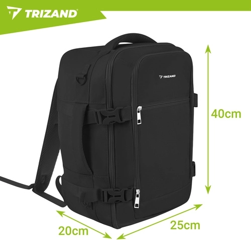Szukasz sprytnego bagażu podręcznego, który spełnia limity wielu linii lotniczych, a jednocześnie utrzymuje rzeczy w idealnym porządku? Ten czarny plecak TRIZAND łączy kompaktowe wymiary 40 × 25 × 20 cm z praktycznym podziałem wnętrza i wygodnym noszeniem. Otwieranie dookoła jak w walizce przyspiesza pakowanie, a wewnętrzne pasy stabilizują odzież.