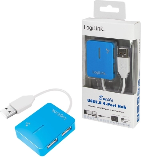 Rozszerz możliwości podłączeń swojego laptopa lub komputera dzięki stylowemu hubowi USB LogiLink Smile. Oferuje cztery porty USB 2.0 do jednoczesnego podłączenia peryferiów, takich jak klawiatury, myszy, pamięci flash czy drukarki. Dzięki wstecznej kompatybilności bez problemu podłączysz także starsze urządzenia USB.
