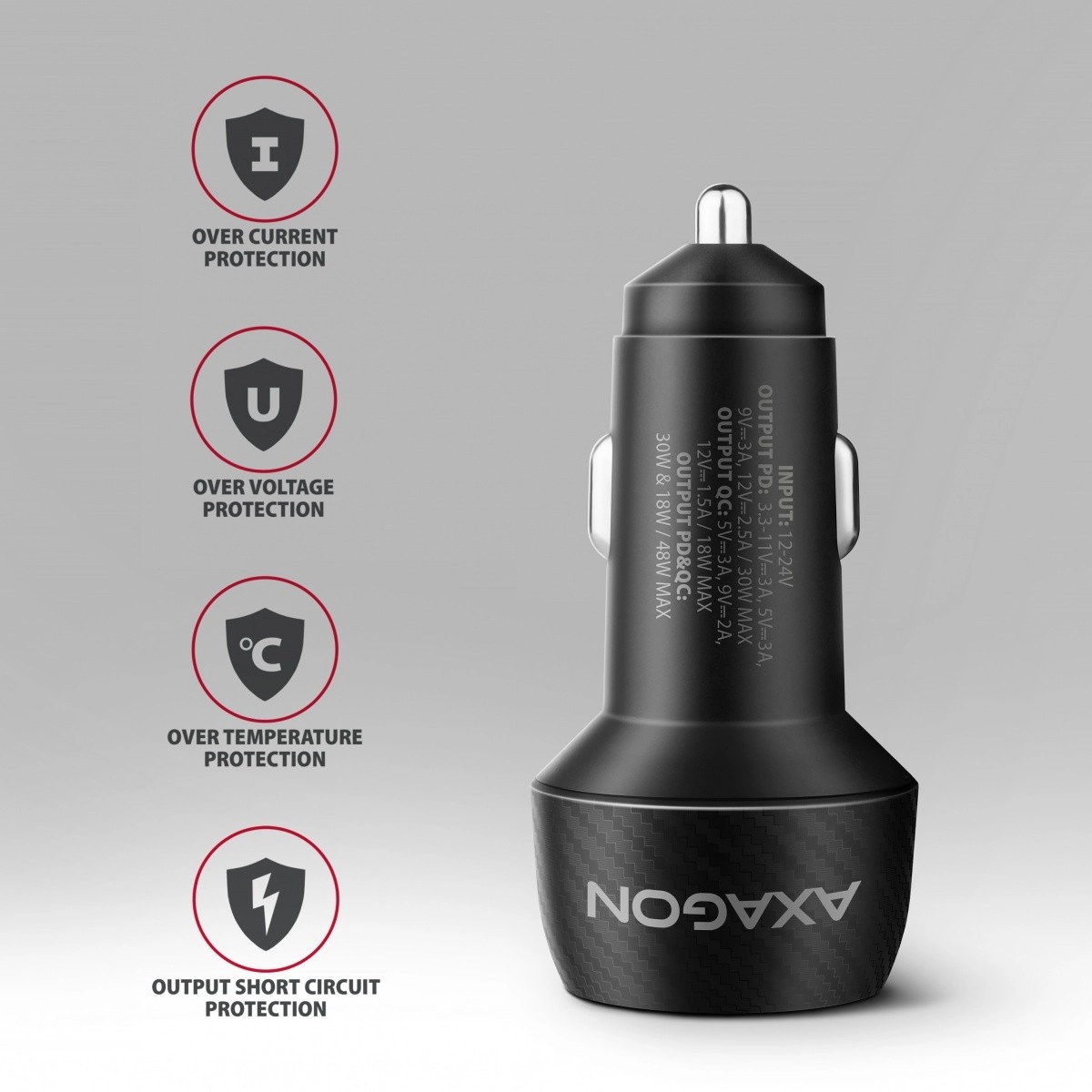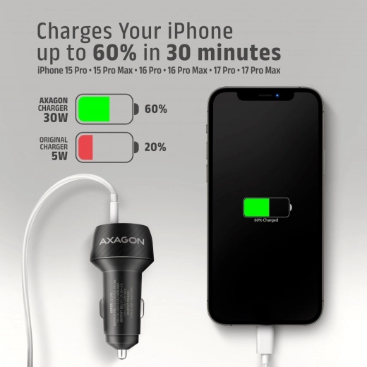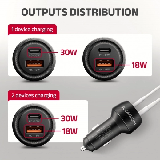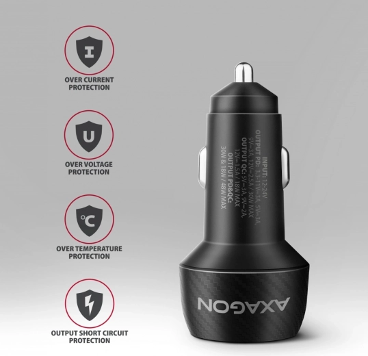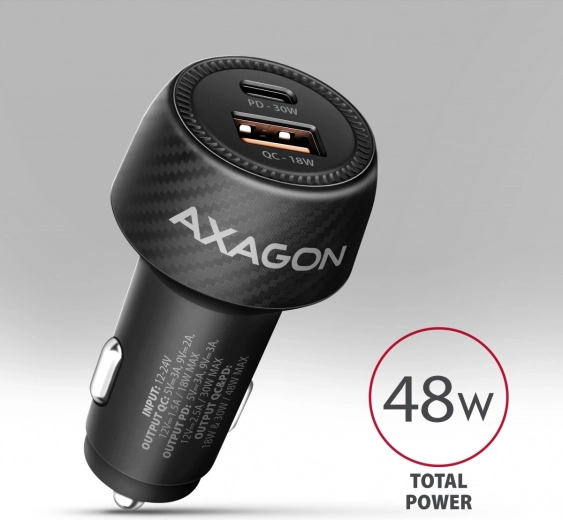 Korzystaj z szybkiego i niezawodnego ładowania w podróży. Ładowarka samochodowa AXAGON PWC-PQ48 łączy porty USB‑C PD 3.0 i USB‑A QC 4+ z łączną mocą 48 W, dzięki czemu bez problemu naładuje nowoczesne smartfony, tablety, a także mniejsze laptopy, takie jak MacBook Air. Elegancka, kompaktowa obudowa o niskim profilu idealnie pasuje do gniazda 12/24 V, a subtelna dioda LED sygnalizuje pracę.