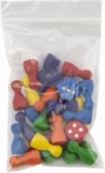 W zestawie znajdują się również dwie standardowe kostki do gry, więc masz wszystko, czego potrzeba do natychmiastowej rozgrywki. Kompaktowy woreczek strunowy o wymiarach 7×13 cm utrzymuje pionki i kostki razem i jest praktyczny w podróży.