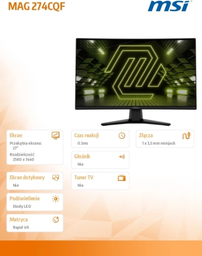 - Rozdzielczość WQHD dla szczegółowego obrazu i większej przestrzeni roboczej